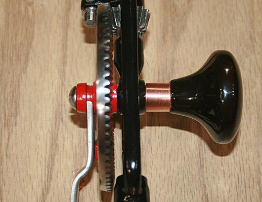 Cocobolo handles; malleable iron, black enameled frame; large gear