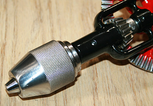 Single speed hand drill with two pinions. Die-cast, iron frame